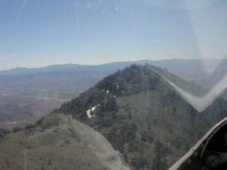 What a fabulous ride! We were towed out to Lake Tahoe's famous Emerald Bay. Reaching it, John released the tow rope and we banked right as our tow place banked left. Our route back home took us over the bay, Fallen Leaf Lake, across Lake Tahoe and back to the ridge that separates Lake Tahoe from Carson Valley. We played along the ridge for a while, John treating us to the fun of ridge soaring - a maneuver in which the glider flies very close to the ridge, using the updraft from the windward side to generate lift. We were also treated to a, let's say, interesting view of our condominium.